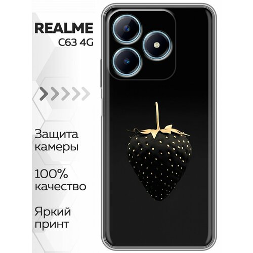 Чехол для Realme C63, Note 60, 60X Черная клубничка (Реалми С63, Нот 60, Ноут 60х)
