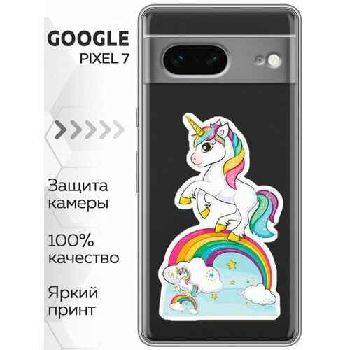 Чехол для Google Pixel 7 с принтом единорог и радуга (Гугл Пиксель 7)