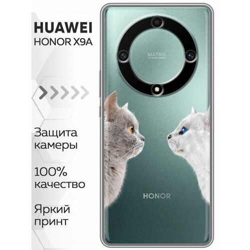 Полупрозрачный дизайнерский силиконовый чехол для Хонор Х9а / Huawei Honor X9a Кошки принт