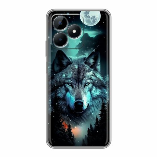 Дизайнерский силиконовый чехол для Реалме С51 / Realme C51 Волк и луна