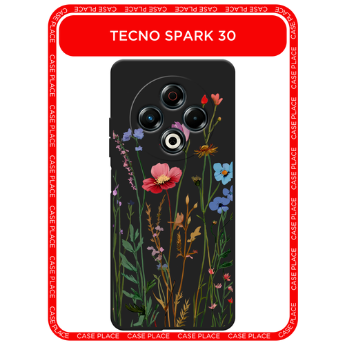 Черный матовый чехол на Tecno Spark 30 / Текно Спарк 30 с принтом Высокие цветы