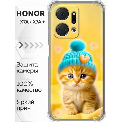 Дизайнерский силиконовый с усиленными углами чехол для Хонор Х7а / Huawei Honor X7a Котенок в шапке принт