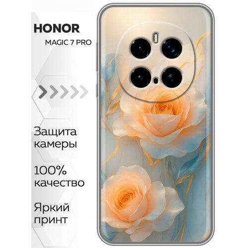 Чехол для Honor Magic 7 Pro с принтом женский с цветами (Хонор Мэджик 7 Про)