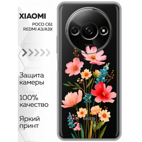 Чехол для Xiaomi Redmi A3, Poco C61, Redmi A3x принт для девушки с цветами (Ксиоми Редми А3, Поко Ц61, Редми А3х)