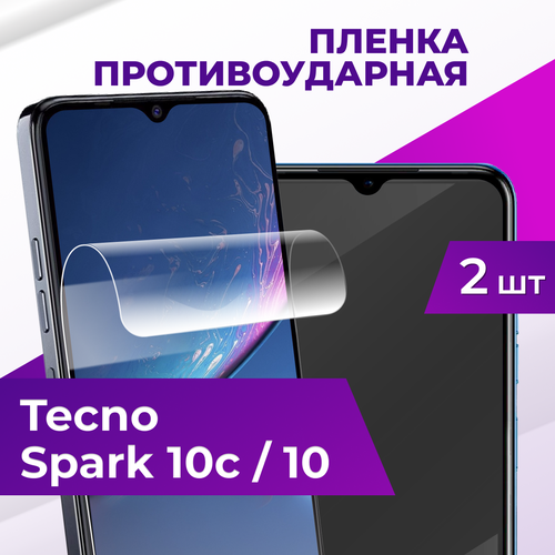 Комплект 2 шт. Глянцевая защитная пленка для телефона Tecno Spark 10, 10C / Гидрогелевая противоударная пленка на смартфон Техно Спарк 10, 10С