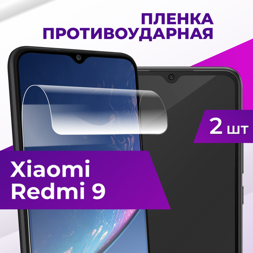 Комплект 2 шт. Глянцевая защитная пленка для телефона Xiaomi Redmi 9 / Гидрогелевая противоударная пленка на смартфон Сяоми Редми 9 / Прозрачная
