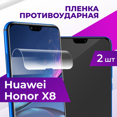 Комплект 2 шт. Глянцевая защитная пленка для телефона Huawei Honor X8 / Гидрогелевая противоударная пленка на смартфон Хуавей Хонор Х8