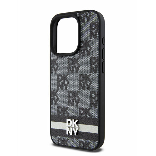DKNY для iPhone 15 Pro Max чехол PU Checkered Printed stripes Metal logo Hard Black