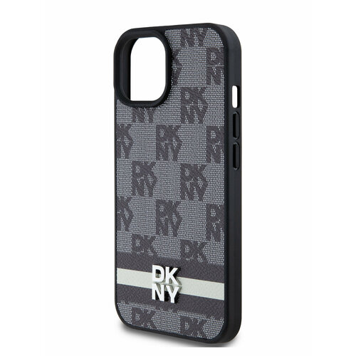 DKNY для iPhone 15 чехол PU Checkered Printed stripes Metal logo Hard Black