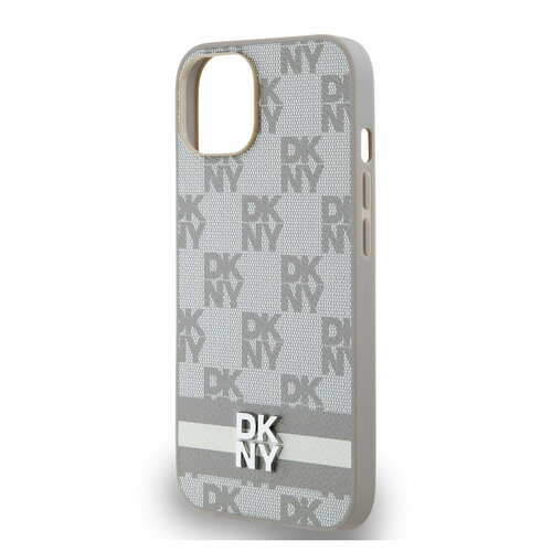 DKNY для iPhone 15 чехол PU Checkered Printed stripes Metal logo Hard Beige