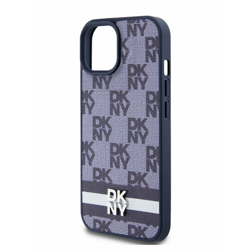 DKNY для iPhone 15 чехол PU Checkered Printed stripes Metal logo Hard Blue