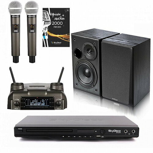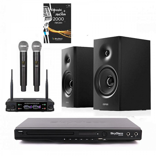 Комплект караоке для дома SkyDisco Karaoke Home Set 3+EDIFIER R1100: приставка с баллами, микрофоны, диск 2000 песен