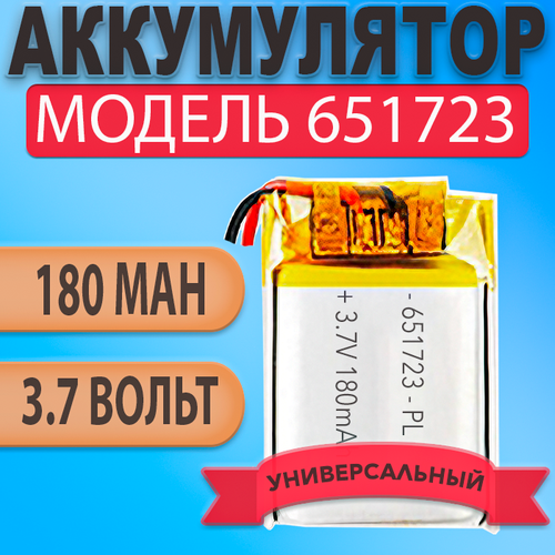 Аккумулятор (батарея) 651723 180mah 3,7v (23х17х6,5 мм)