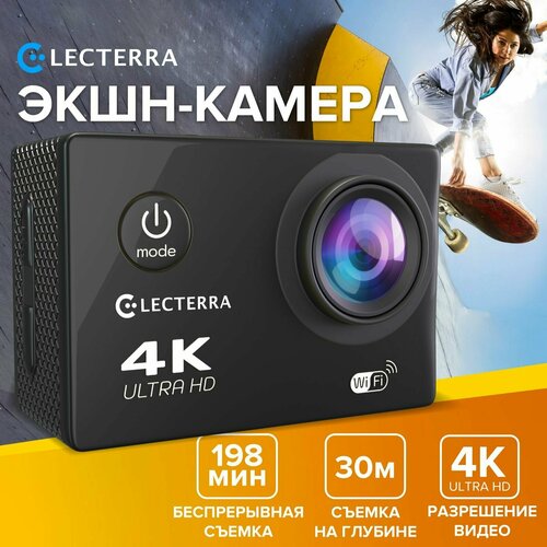 Экшн камера Electerra 4К UHD 30 fps. Подводная съемка. Видеокамера для активного отдыха. Пульт дистанционного управления, Wi-Fi. Черный