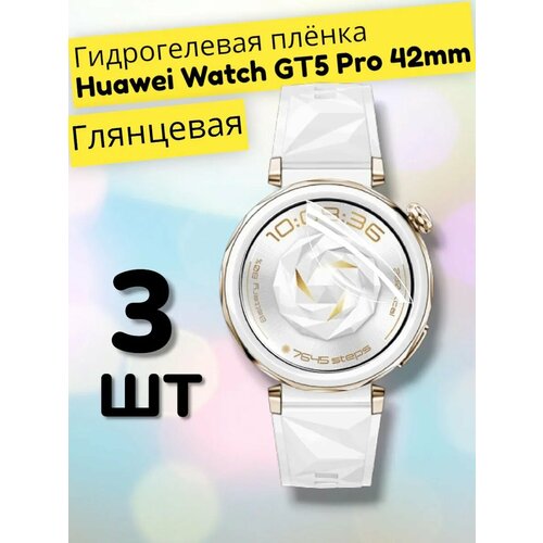 Гидрогелевая защитная пленка (Глянец) на часы Huawei Watch 5 46mm (3шт)/бронепленка хуавей вотч 5 46мм