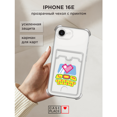 Чехол на Apple iPhone 16e (Айфон 16е) с картой и принтом Пиксельное сердечко