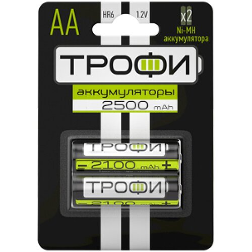 Аккумулятор "Трофи", тип AA (HR6-2BL), 2500 мАч, 2 шт