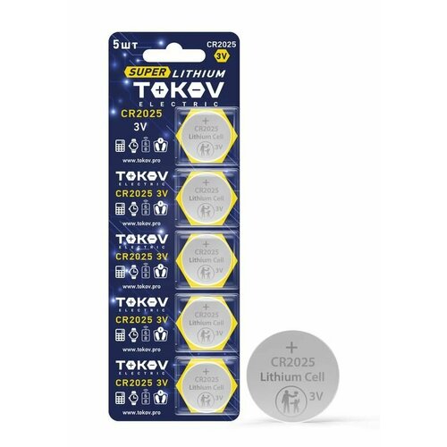 Элемент питания литиевый CR2025 таблетка (блистер 5шт) TOKOV ELECTRIC TKE-LI-CR2025/B5