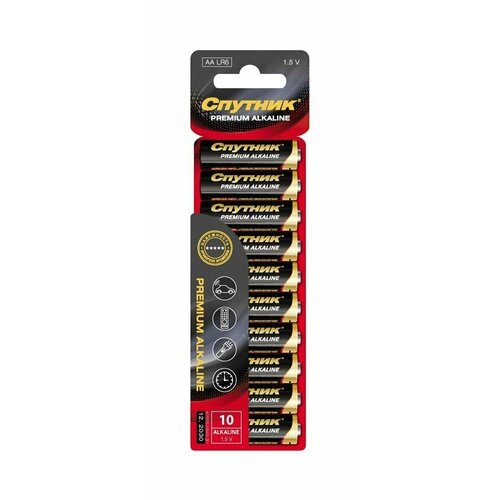 Батарейки пальчиковые алкалиновые (щелочные) Спутник LR6 (АА), 10 шт.