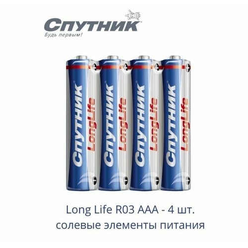 Солевые элементы питания спутник R03/4S LONG LIFE 4 шт.