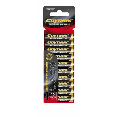 Батарейки мизинчиковые / батарейки алкалиновые (щелочные) Спутник LR03 ААА, 10 шт.