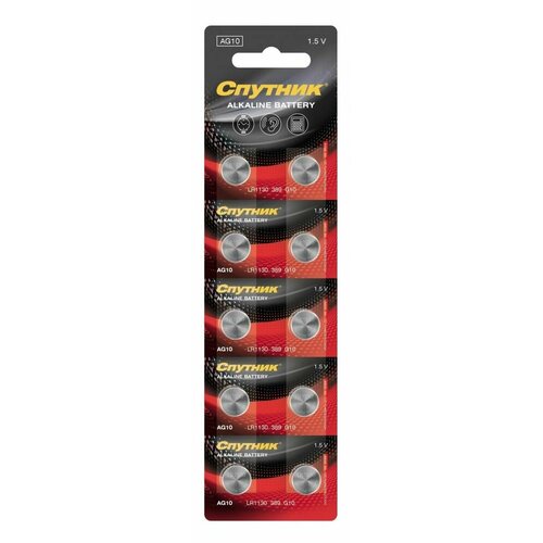Батарейки алкалиновые Спутник AG10 / LR54 / LR1130, 10 шт.