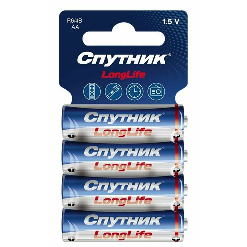 Солевые элементы питания спутник R6/4B LONG LIFE 4 шт.