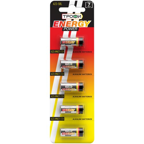 Батарейка алкалиновая "Трофи" Alkaline, А23 (MN21)-5BL, 12В, блистер, 5 шт.