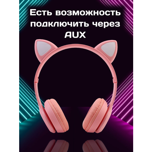 Наушники с ушками светящиеся беспроводные More choice HW25kids розовые