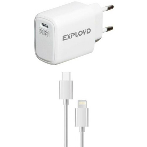 Сетевое зарядное устройство Exployd EX-Z-1337, USB-С, 3 А, 20 Вт, кабель Lightning, белое