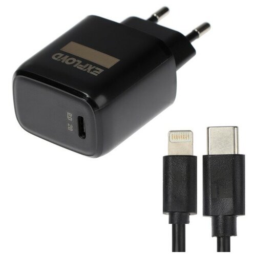 Сетевое зарядное устройство Exployd EX-Z-1373, USB-C, 3А, Lightning, быстрая зарядка, черное