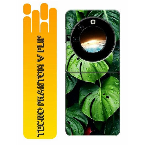Чехол для Tecno Phantom V Flip 5G с принтом Листья (Техно Фантом В Флип 5G)