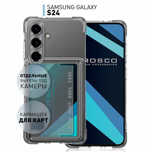 Силиконовый чехол с кармашком Rosco на Samsung Galaxy S24 (Самсунг Галакси С24), противоударный, прозрачный