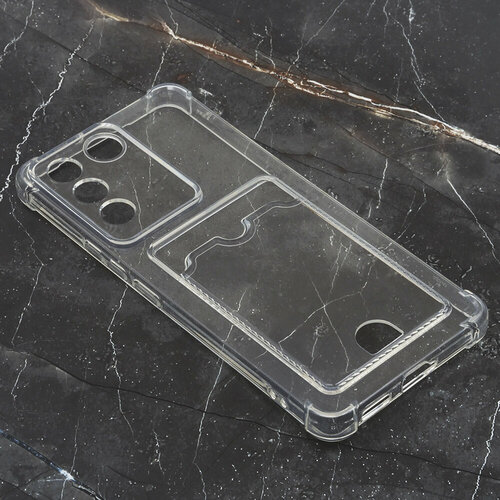 Силиконовый чехол с карманом для карт Vivo V27e, с углами, прозрачный