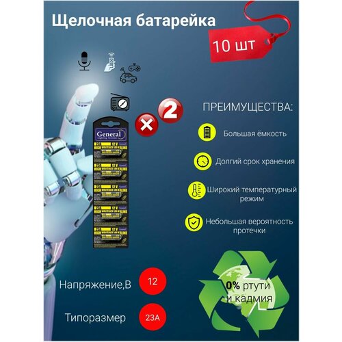 General, Батарейка , Количество 10 шт, Химический тип Щелочной, Форм-фактор 23А