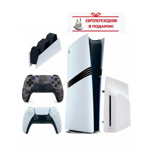 Игровая приставка Sony PlayStation 5 Pro Digital Edition, 2Tb, Зарядная станция + Дисковод +2й геймпад камуфляж, без игр