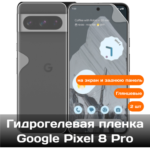Гидрогелевая пленка для Google Pixel 8 Pro на экран и заднюю панель / Защитная противоударная пленка 2 шт