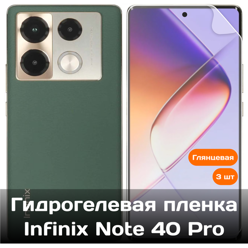 Гидрогелевая пленка для Infinix Note 40 Pro на весь экран с вырезом под камеру / Защитная противоударная пленка (3 шт)