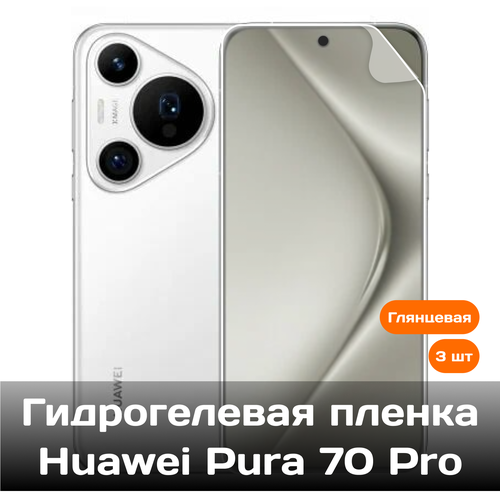 Гидрогелевая пленка для Huawei Pura 70 Pro на весь экран с вырезом под камеру / Защитная противоударная пленка (3 шт)