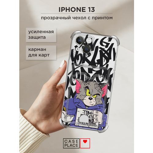 Чехол на Apple iPhone 13 (Айфон 13) с картой и принтом Том и Джерри