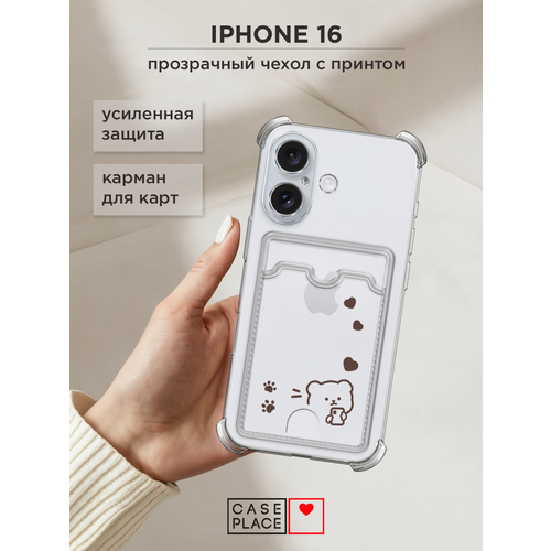 Чехол на Apple iPhone 16 (Айфон 16) с картой и принтом Мишка и сердечки