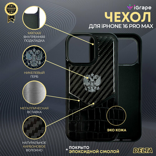 Чехол с гербом РФ кожа-карбон Delta для iPhone 16 Pro Max, iGrape (Черный) / чехол на айфон 16 про макс