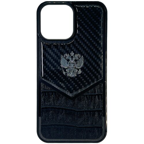 Чехол с гербом РФ кожа-карбон Delta для iPhone 13 Pro Max, iGrape (Черный)