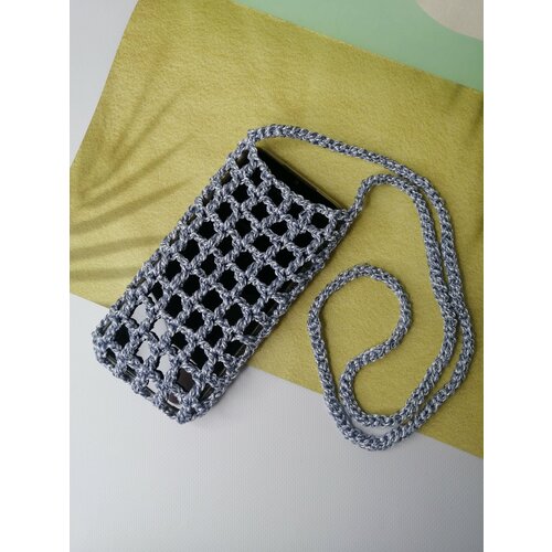 Чехол-сумка, вязаный, для телефона/смартфона, джинсовый, с ремешком