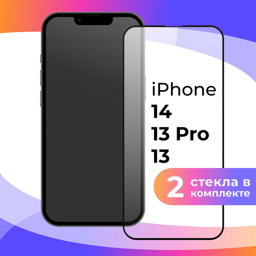 Комплект 2 шт. Защитное стекло для телефона Apple iPhone 13, 13 Pro, 14 / Глянцевое противоударное стекло 5D с олеофобным покрытием на смартфон Эпл Айфон 13, 13 Про, 14