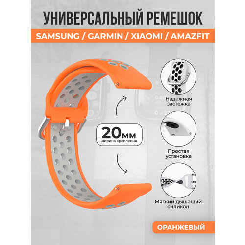 Универсальный ремешок для Samsung, Garmin, Xiaomi, Amazfit, 20 мм, серо-оранжевый