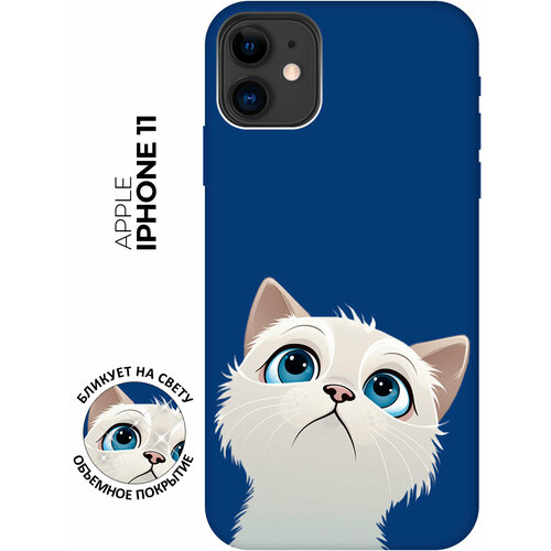 Силиконовый чехол на Apple iPhone 11 / Эпл Айфон 11 с рисунком "Белый котик" Soft Touch синий
