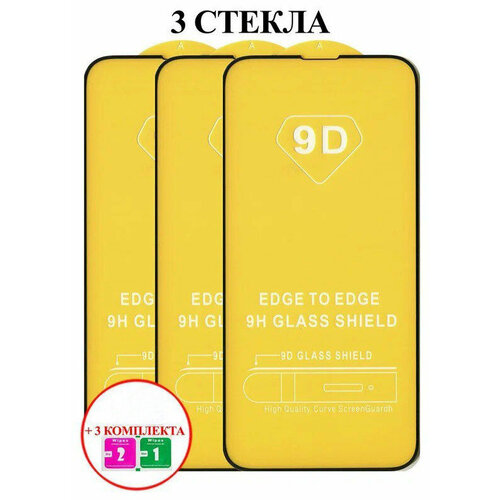 Защитное стекло для Apple Iphone 15 Plus , комплект 3 шт, 2.5D, полная наклейка, с черной рамкой