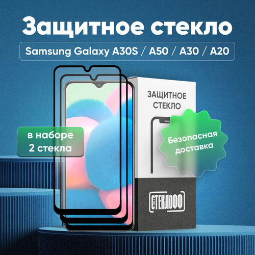 Набор защитных стекол для Samsung Galaxy A30S / A50 / A30 / A20 c полным покрытием, серия Стеклофф Base, 2 шт
