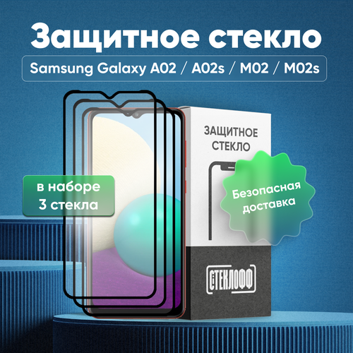 Набор защитных стекол для Samsung А02 / A02s / M02 / M02s c полным покрытием, серия Стеклофф Base, 3 шт